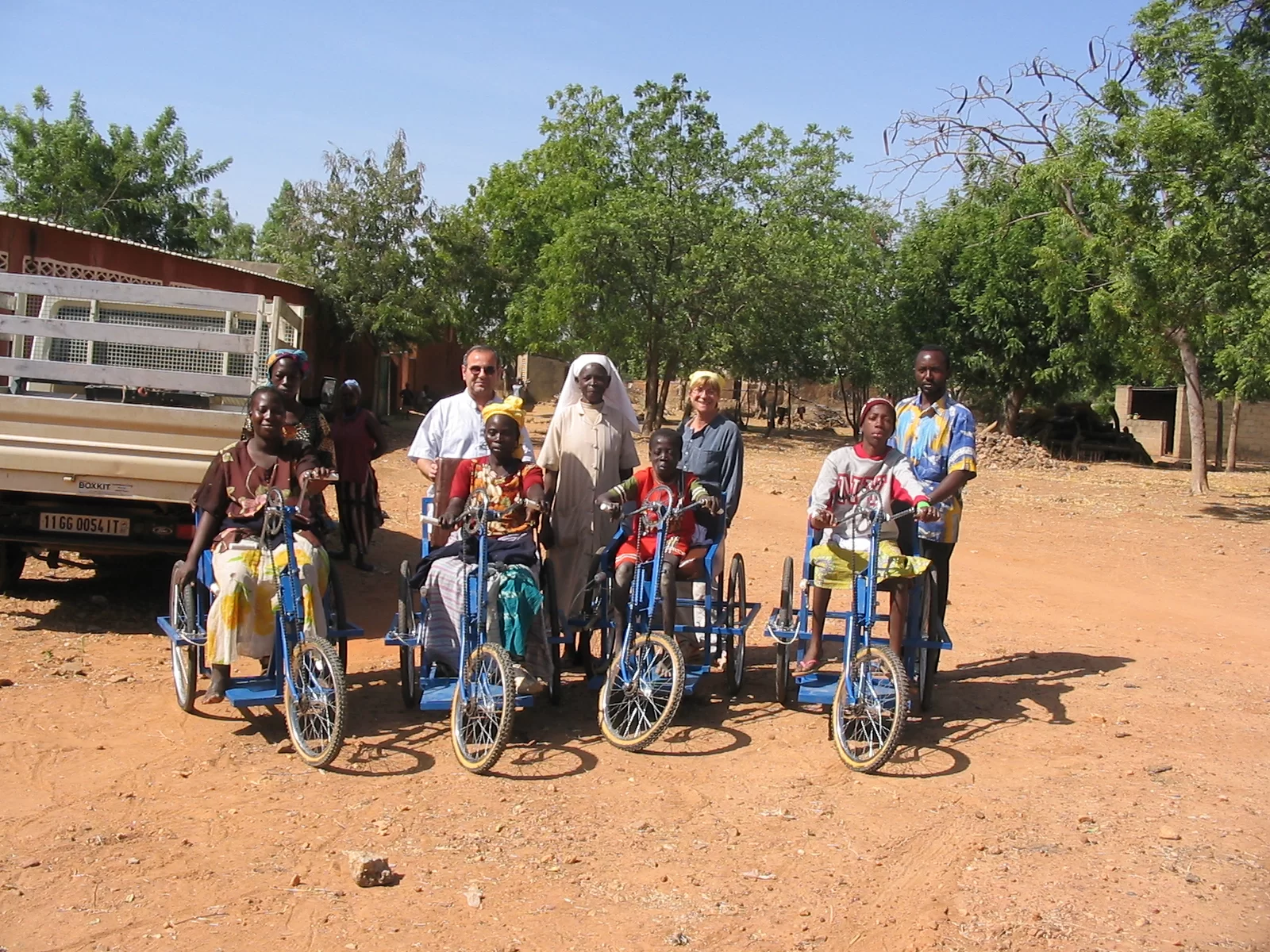 Quell’anno in programma avevo 15 giorni di consegne di carrozzine per disabili, in altrettanti villaggi nei dintorni della capitale Ouagadougou. Ogni giorno avevamo un carico di 8 – 10 carrozzine, da legare bene sul cassone del furgone la sera prima del viaggio, già pronte per la consegna in qualche villaggio.